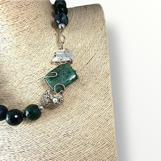 Collana girocollo con agata e laterale in argento 925 lavorato a mano