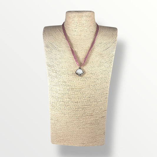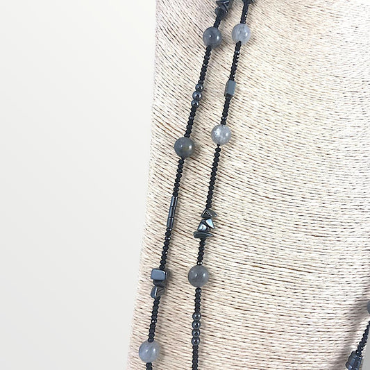 Collana lunga con quarzo grigio, ematite e cristalli