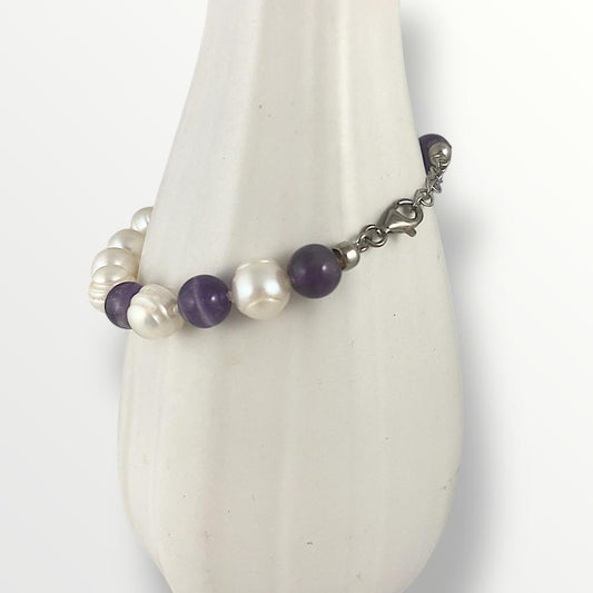 Bracciale con perle di acqua dolce , argento 925 e ametista