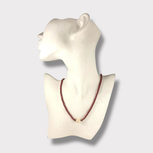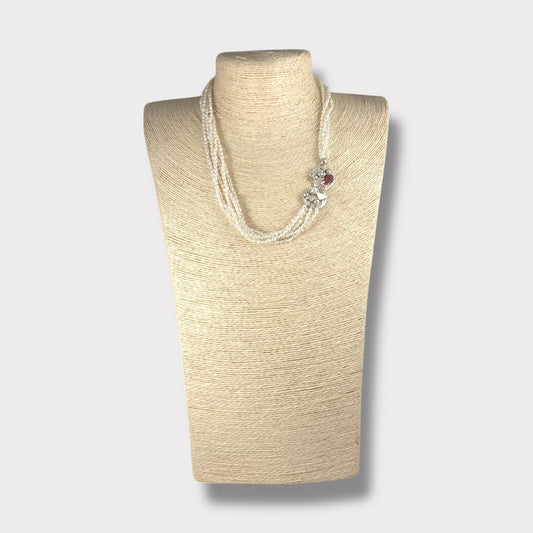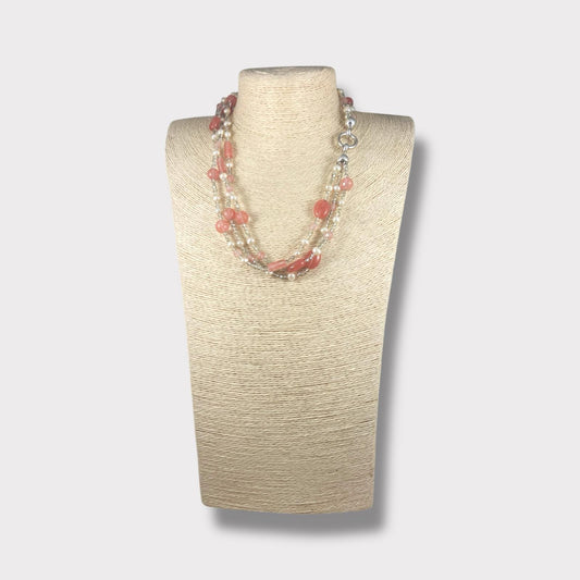 Collana lunga con perle di acqua dolce, agata e cristalli
