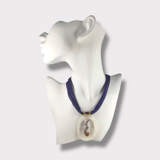 Collana a ciondolo con ametista, argento 925 e madreperla